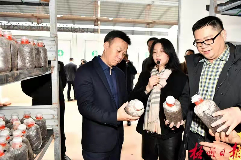 2月11日上午,廣東省肇慶市封開縣委副書記、縣長(zhǎng)丘燦輝,封開縣委副書記韋賢康一行到公司食用菌基地考察調(diào)研。梧州市萬秀區(qū)委副書記、區(qū)長(zhǎng)易潔,副區(qū)長(zhǎng)黃沛森陪同。