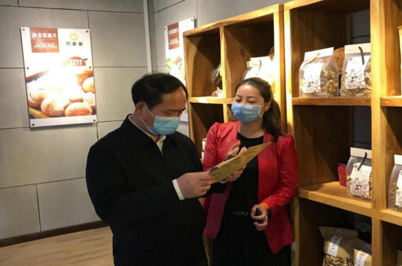 • 2021年12月21日上午,梧州市委書記蔣連生(左)到公司食用菌基地調(diào)研,了解企業(yè)發(fā)展現(xiàn)狀,以及生產(chǎn)銷售、品牌運(yùn)營(yíng)等情況